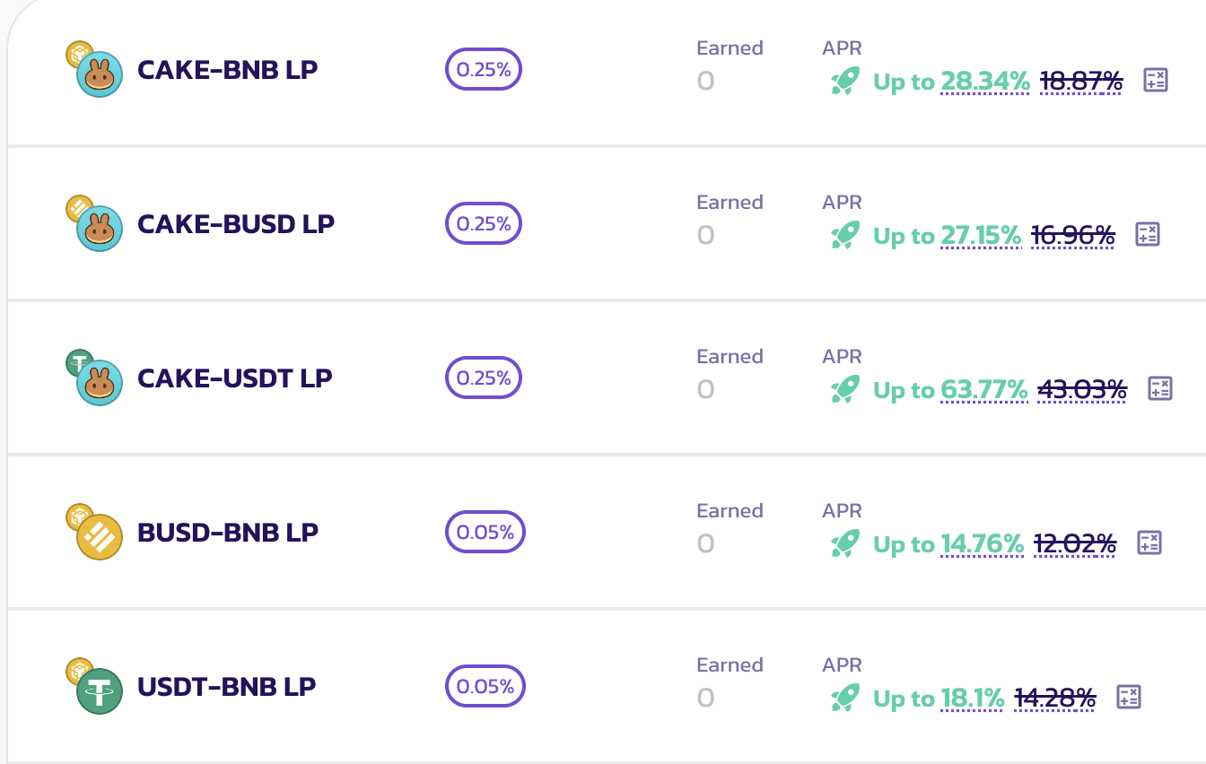 上記の画面は、Defiでよく利用されるパンケーキスワップのファーミング画面になりますが、数字の部分は「1年間の配当利率」を指します。