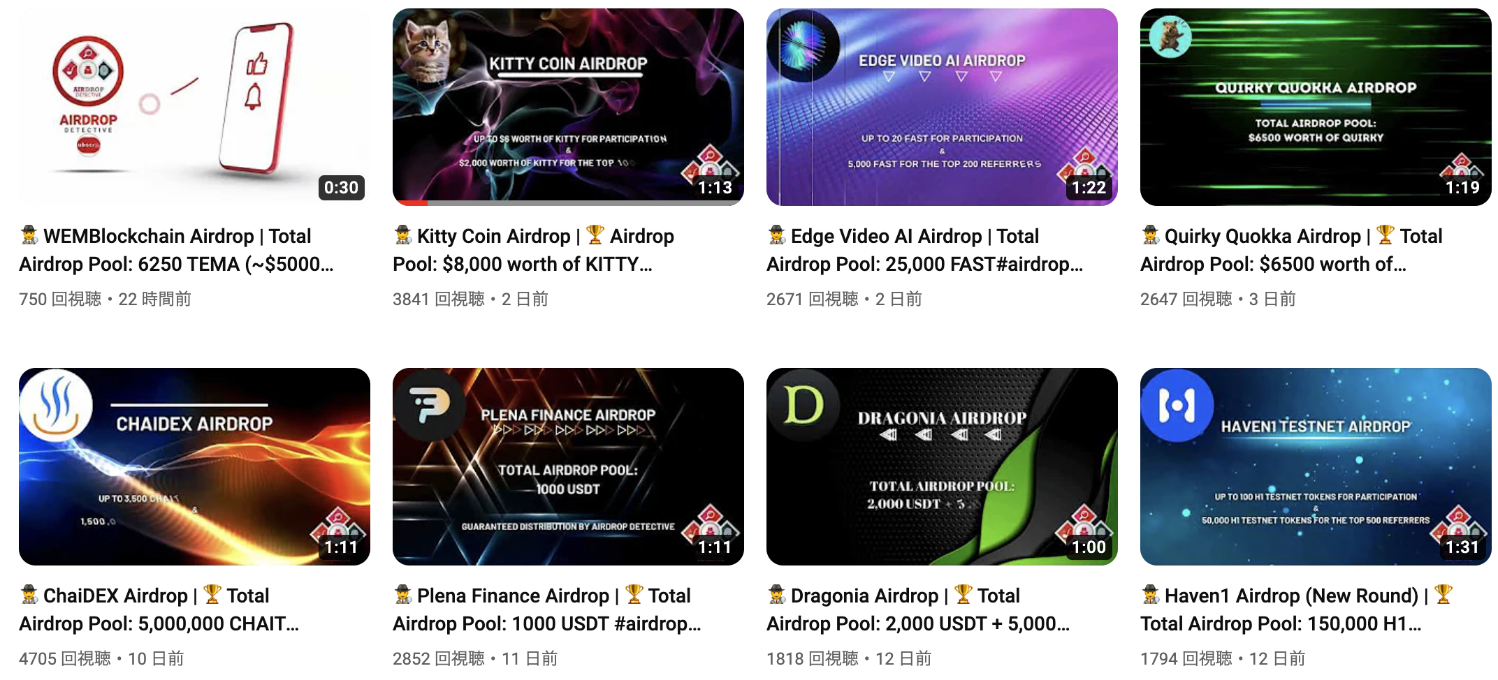 無料で貰ったコインが、数ヶ月後に100万円以上の価値になっていた・・・などは結構ある話で、下記のエアドロップを紹介する海外YouTubeメディアのように、色んなエアドロップ案件がネット上に転がっています。
